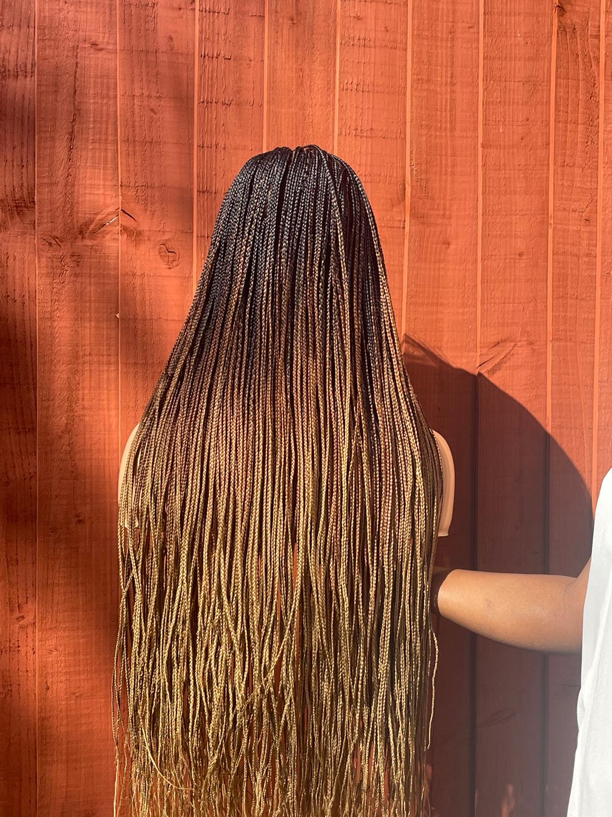 Elevate your style with our stunning Ombre Braid Wig. This trendy piece features a seamless blend of colors, transitioning from dark to light for a captivating look. The intricate braids are expertly crafted, offering a natural and effortless appearance. Whether you prefer a subtle or dramatic ombre, this wig adds a touch of sophistication and dimension to your hairstyle